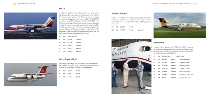 This isn’t your typical aircraft history book; instead of the dry facts many aircraft books publish (basic history, who bought the aircraft, how many were built, and technical statistics), Fighting to Be Heard is the story of the aircraft and the regional jet arm of BAe, those on the front line at BAe, those who flew it, and those who sold them to airlines. Featuring stories never before printed, photographs from the archives of British Aerospace that have never been published, and interviews with a wide range of people from pilots to customer service reps, salesman to airline executives, the story is so engrossing that you’ll be hard pressed to put the book down. The author spent over four years researching and interviewing a wide range of people involved with the 146, including airlines and operators that flew this unique aircraft. He’s even summoned records from the Federal Bureau of Investigation (FBI) under the Freedom of Information Act (FOIA) for the tragic murder in the sky of PSA flight 1771, with never before seen images of evidence derived from over 300 pages of reports and interviews.